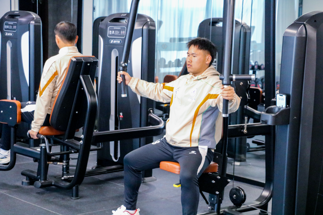 在室内健身房,球员们按照教练的指导进行放松训练。借助专业器械,队员们有的进行核心稳定性练习,有的开展下肢负重训练,同时结合静态拉伸与筋膜放松,有效缓解肌肉紧张与疲劳,为球场专项训练提供坚实保障。
