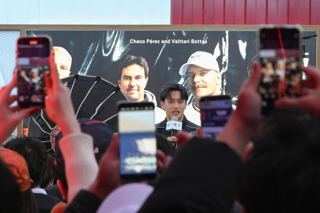 2026年3月11日,中国车手周冠宇现身凯迪拉克车队的活动现场,引发粉丝们的围观。澎湃新闻记者 吴栋 图