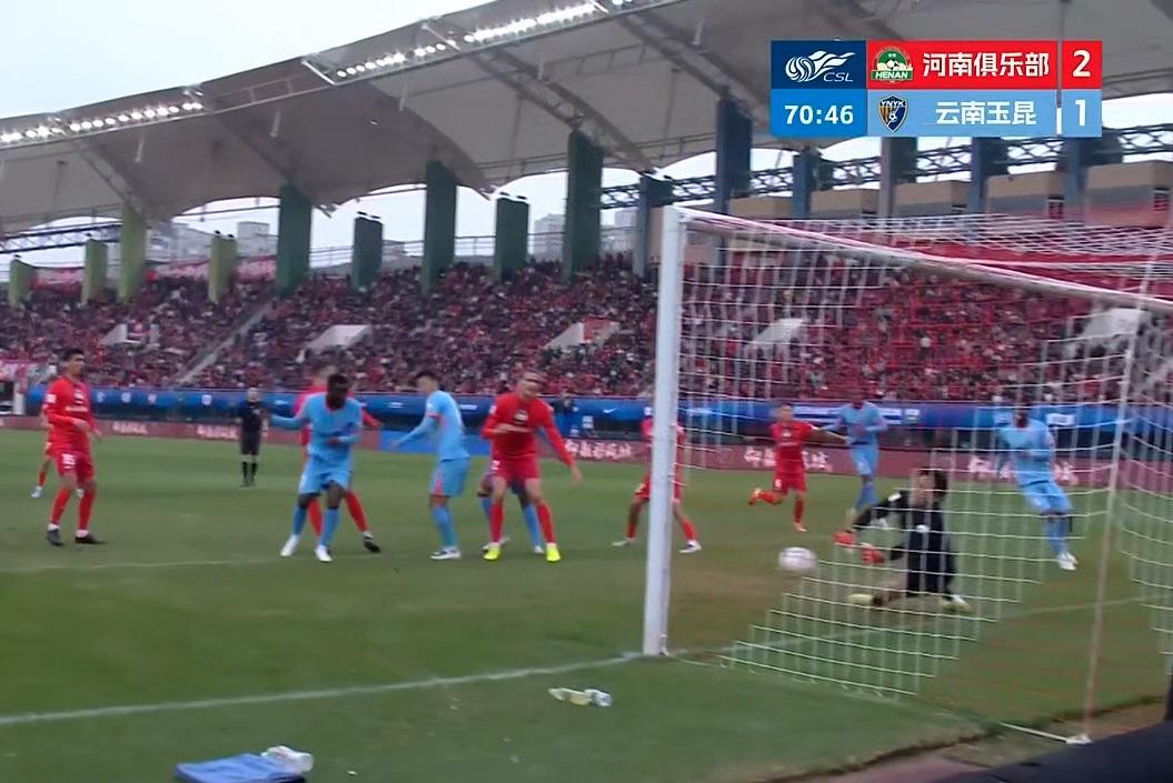 对方也利用角球机会威胁河南队球门,王国明上演极限门线扑救!